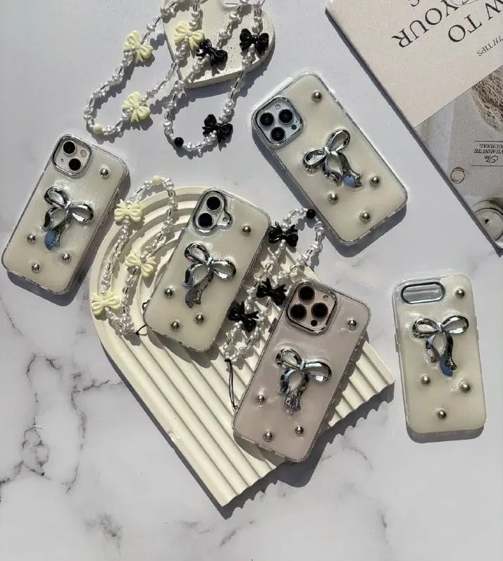 قاب گوشی با طراحی زیبا و پاپیون تزئینی در پشت، ساختهشده از جنس مقاوم و باکیفیت که محافظت عالی در برابر ضربه و آسیب برای گوشی فراهم میکند.
