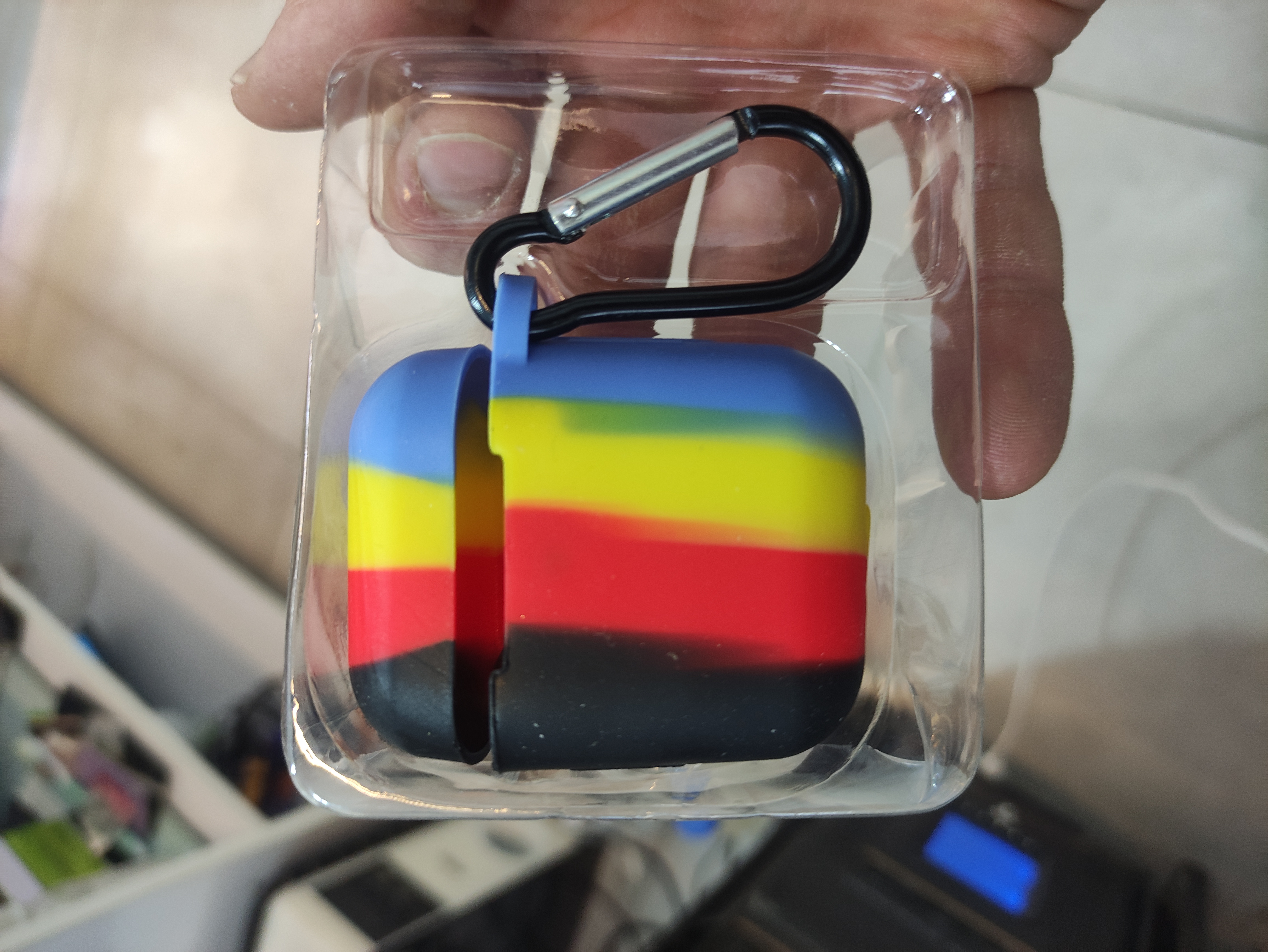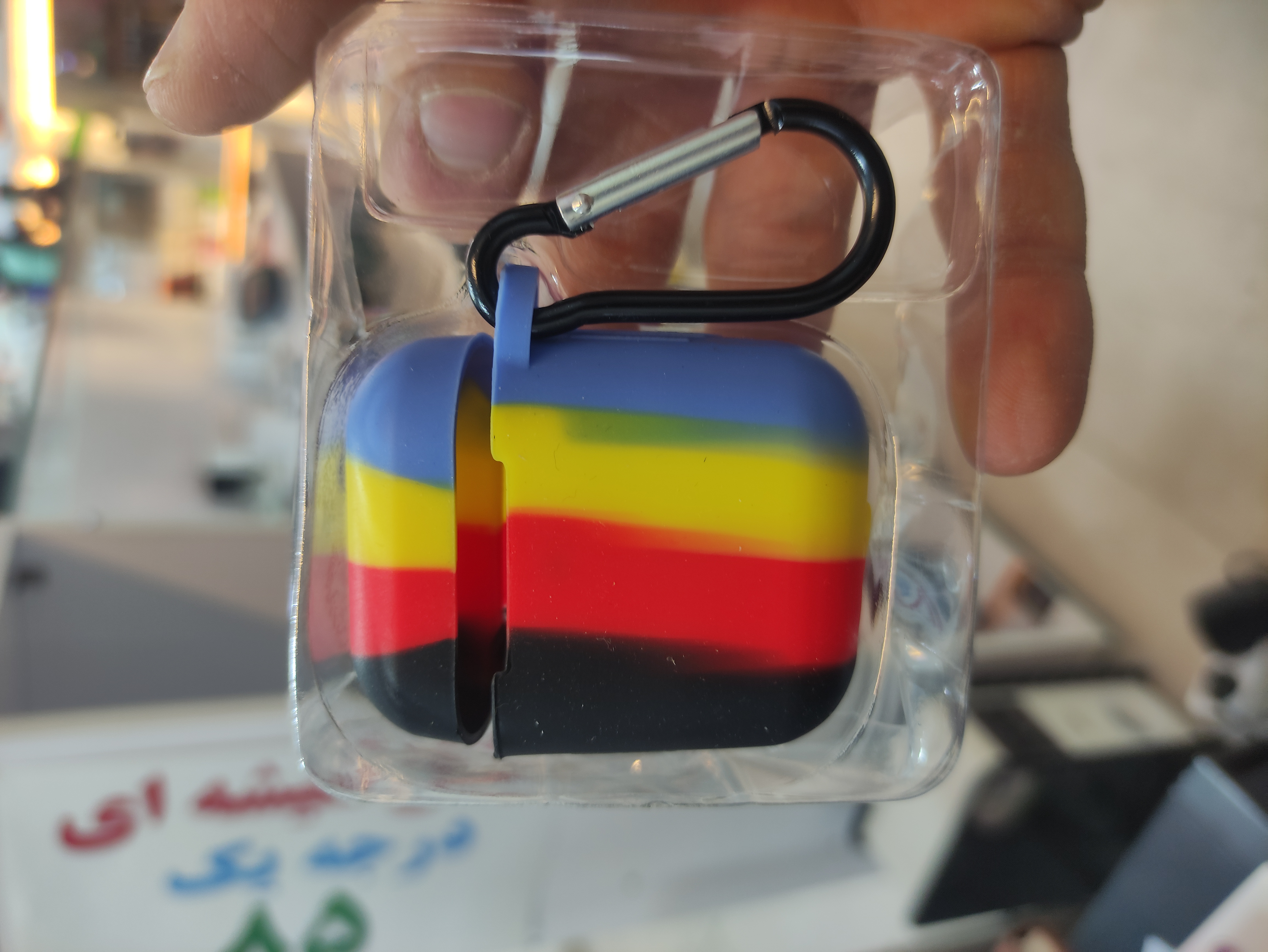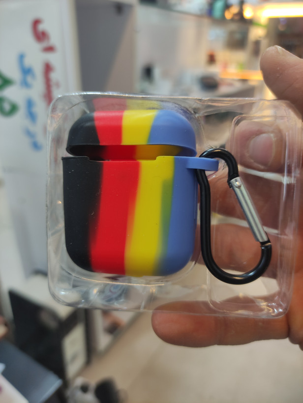 طراحی ترکیبی قرمز، زرد، آبی و مشکی، جلوهای خاص و پرانرژی به ایرپاد میدهد. ویژگیها: جنس سیلیکونی نرم و بادوام برای محافظت 360 درجه قلاب فلزی مقاوم برای اتصال به کیف یا کمربند دسترسی آسان به درگاه شارژ بدون نیاز به خارج کردن ایرپاد سازگار با AirPods نسل اول و دوم مناسب برای استفاده روزمره، سفر و ورزش