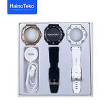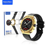 اگر به نوع طراحی ساعت هوشمند هاینو تکو rw31 دقت کنید، متوجه می شوید که تنها با خرید یک ساعت، می توانید ساعتی در سه رنگ متفاوت در اختیار داشته باشید. طراح و تولیدکننده، برای شما سه قاب در نظر گرفته است. این قاب های فلزی هریک از رنگبندی خاص خود برخوردارند. بنابراین می توانید با اتصال هریک از آن ها به ساعت خود، یک استایل متفاوت را تجربه کنید. حتی بندهایی که برای این ساعت هوشمند در نظر گرفته آن هم دو رنگ است. بندهای سیلیکونی در دو رنگ سفید و مشکی که با سه نوع قاب ساعت، هماهنگی دارند و می توانند مورد استفاده قرار بگیرند. در رابطه با نحوه اتصال شارژر و همینطور شارژ نمودن ساعت هوشمند خود باید بدانید که شارژر مغناطیسی کار شما را راحت کرده است و می توانید به آسانی، نسبت به شارژ نمودن آن اقدام کنید. صفحه نمایش لمسی و تمام رنگی هم از دیگر ویژگی هایی است که باید بیان کنیم. در عین این که متناسب با قاب و بندی که برای ساعت در نظر گرفته اید هم می توانید واچ فیسی را انتخاب کنید. پس عملیات شخصی سازی هم در این ساعت برای شما وجود دارد تا شرایط بهتر و مناسب تری داشته باشید. ساعت فوق با کمک بلوتوث به تلفن همراه شما متصل می شود و هر اتفاقی که در گوشی می افتد را می توانید در ساعت خود مشاهده نمایید. طراحی این گجت به صورت ضد آب است. بنابراین هیچ مشکلی برای آن در زمان پاشش آب موقع شست و شوی دستان و یا قدم زدن زیر باران به وجود نخواهد آمد. باتری آن را هم به گونه ای در نظر گرفته اند که می تواند تا 45 روز به حالت آماده به کار باشد و خاموش نشود.